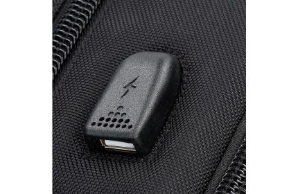 Glavna pregrada sa posebnim džepom za računar do 15,6" (35,5x26x3cm) i pregradom za tablet. Još jedan odeljak sa velikim džepom za čuvanje dokumenata i organizatorom sa mrežastim džepom sa rajsferšlusom, otvorom za olovku i dva džepa. Integrisan USB port sa kablom za povezivanje sa power bank-om. Prednji džep sa rajsferšlusom za odlaganje manjih dodataka.
