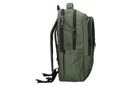 Kabinski laptop ranac izrađen je od vodootpornog poliestera sa sofisticiranim detaljima od sintetičke kože. Glavni odeljak sadrži dva unutrašnja dela: jedan sa rajsferšlusom za dokumenta i drugi sa elastičnim trakama koje stabilizuju garderobu. Ugrađeni USB port s kablom omogućava punjenje telefona ili slušalica dok ste u pokretu—samo povežite eksternu bateriju iznutra. Zadnji, postavljeni odeljak štiti laptop do 15,6″ i tablet, držeći ih odvojeno od ostatka stvari. Prednji odeljak je sa mrežastim džepom i organizatorom održava punjače, kablove i sitnice preglednim. Bočne, široke i mekano postavljene naramenice ravnomerno raspoređuju težinu, dok zadnja traka omogućava brzo kačenje na teleskopsku ručku kofera. Stil, funkcionalnost i udobnost u jednom laganom rancu – savršen izbor za poslovna putovanja, vikend begove ili svakodnevni radni tempo.