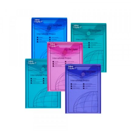 Premium fascikla pismo sa zatvaranjem na dugme. Snažan polipropilenski materijal sa atraktivnim reljefom. Mix popularnih boja. 1 x Plava, 1