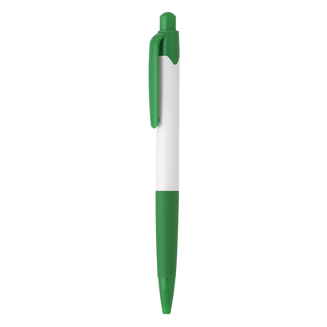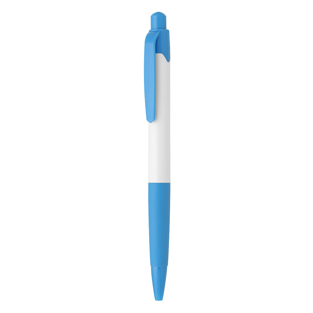 Hemijska olovka • Materijal: ABS • Gumirani grip • TC kuglica 0,7 mm • Plavo mastilo • Jedan od najprodavanijih modela • Odličan odnos kvaliteta i cene • Široka paleta boja • Belo telo sa detaljima u istoj boji • Sjajna završna obrada tela olovke • Idealna za svakodnevnu i promotivnu upotrebu