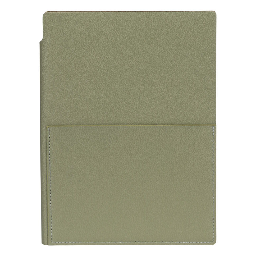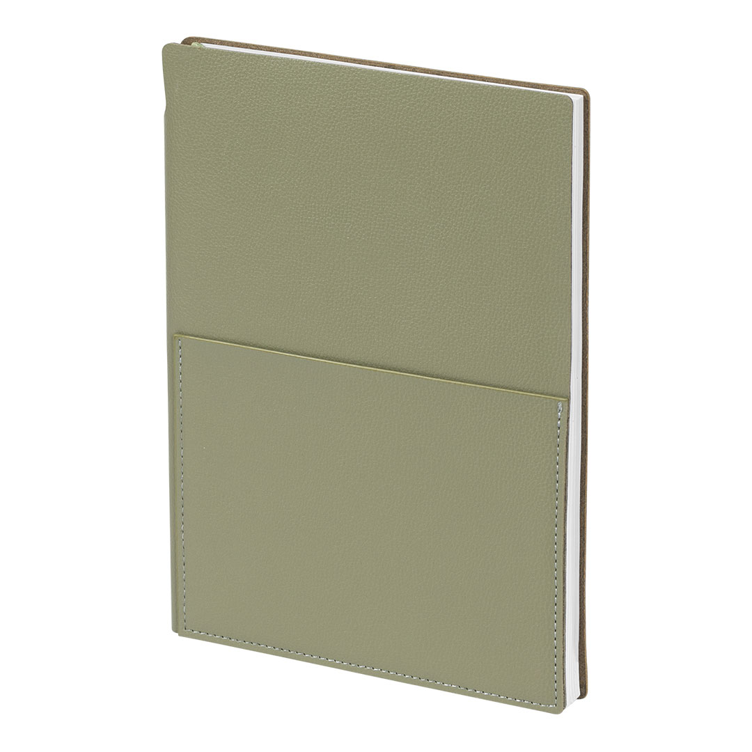 Notes formata A5 sa savitljivom koricom od imitacije kože. Dizajniran je sa zaobljenim ivicama za prijatno svakodnevno korišćenje, dok džep na spoljašnjoj strani prednje korice omogućava praktično odlaganje dokumenata ili papira. Knjižni blok sadrži 192 strane u linije, pogodne za beleške i organizaciju.