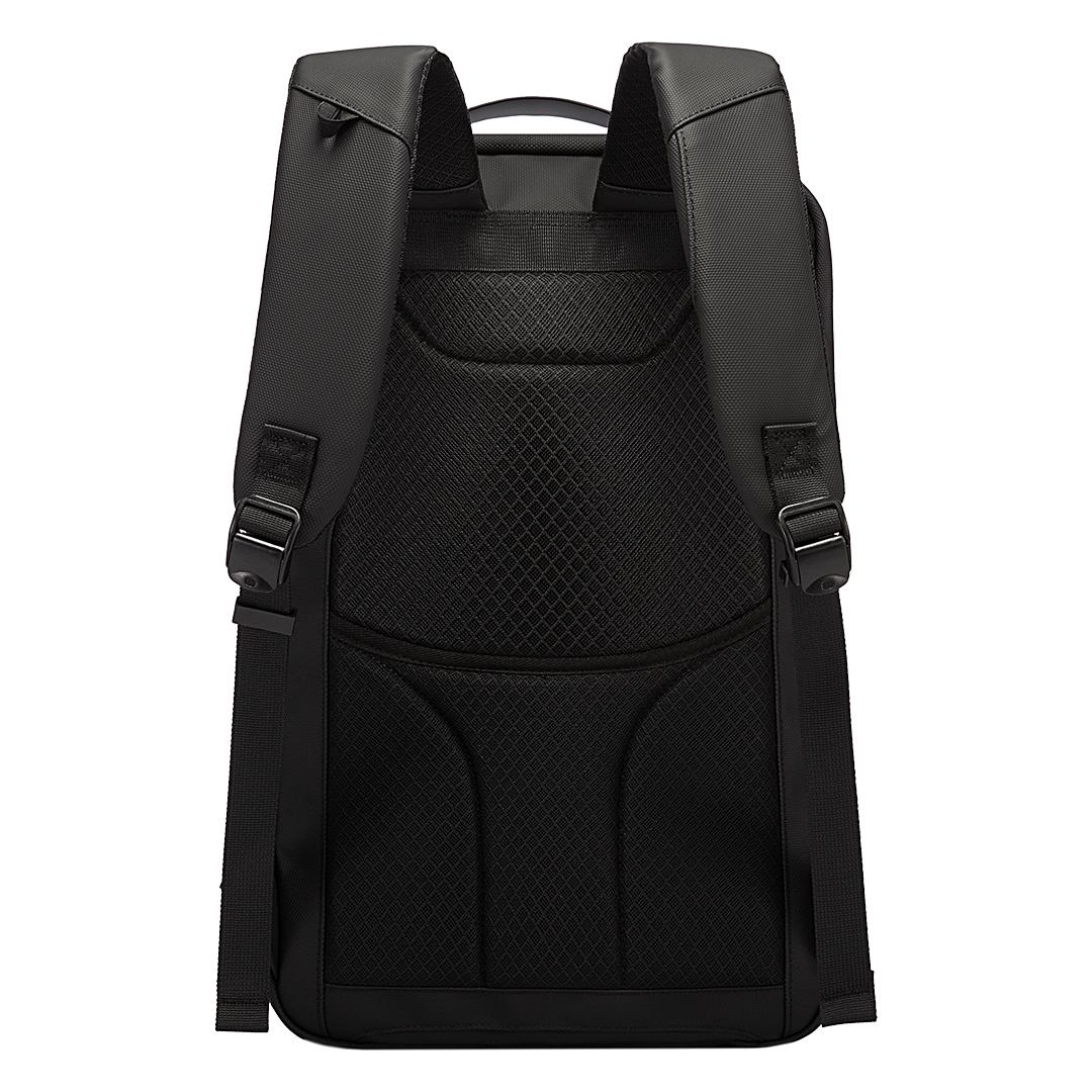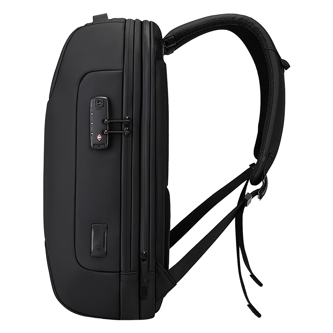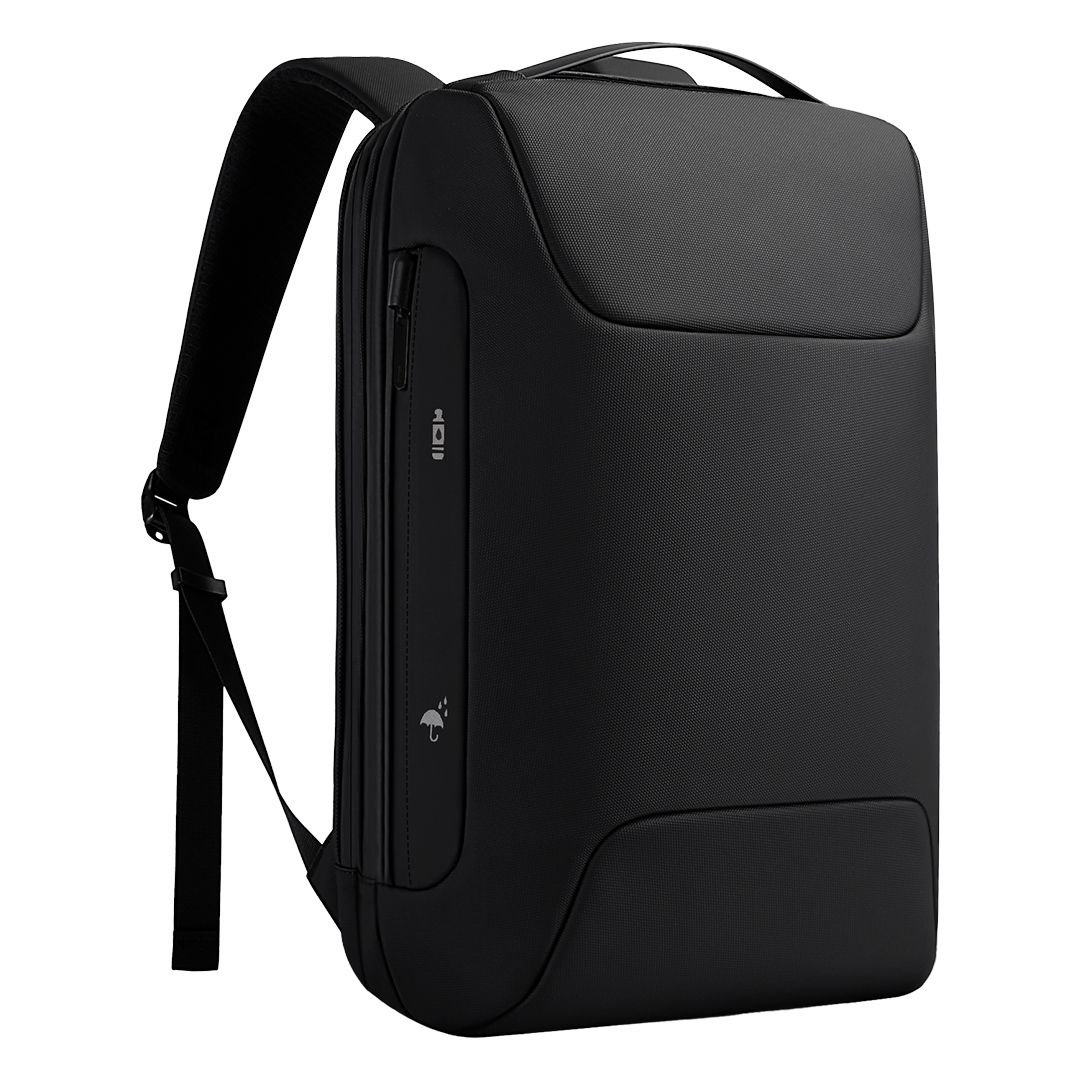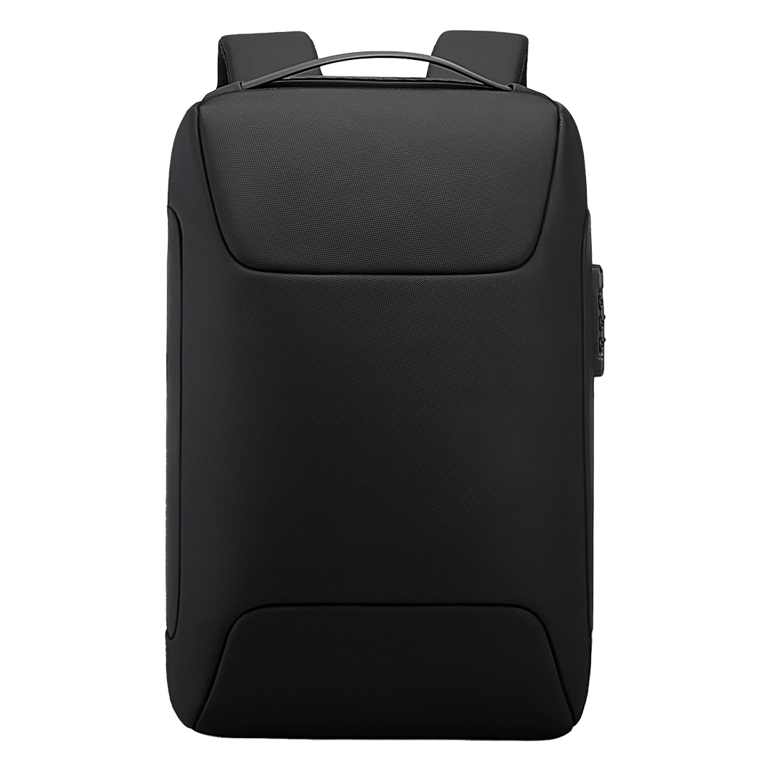 Poslovni ranac • Jedan glavni odeljak • Odeljak za laptop 15″ • Odeljak za tablet • Vodoodbojni najlonski materijal • Vodootporni rajsferšlusi • Prednji džep sa rajsferšlusom • Vodootporni spoljašnji džep za bocu ili kišobran • Sigurnosna brava sa šifrom • USB A i Type-C konektori • Traka za pričvršćivanje na kofer • Pogodno za brendiranje