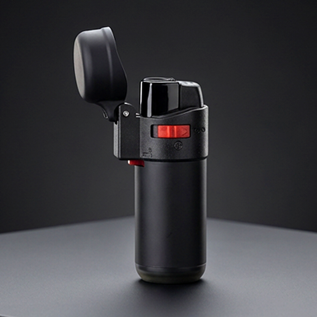 Brener upaljač • Materijal: ABS • Mlazni plamen • Dopunjiv • Soft touch završna obrada • Vetrootporan • Lock funkcija (zaključavanje plamena) • Sertifikovan: EN 13869 – bezbednosni standard (dečja sigurnosna zaštita) • Sertifikovan: ISO 9994 – bezbednosni standard za upaljače