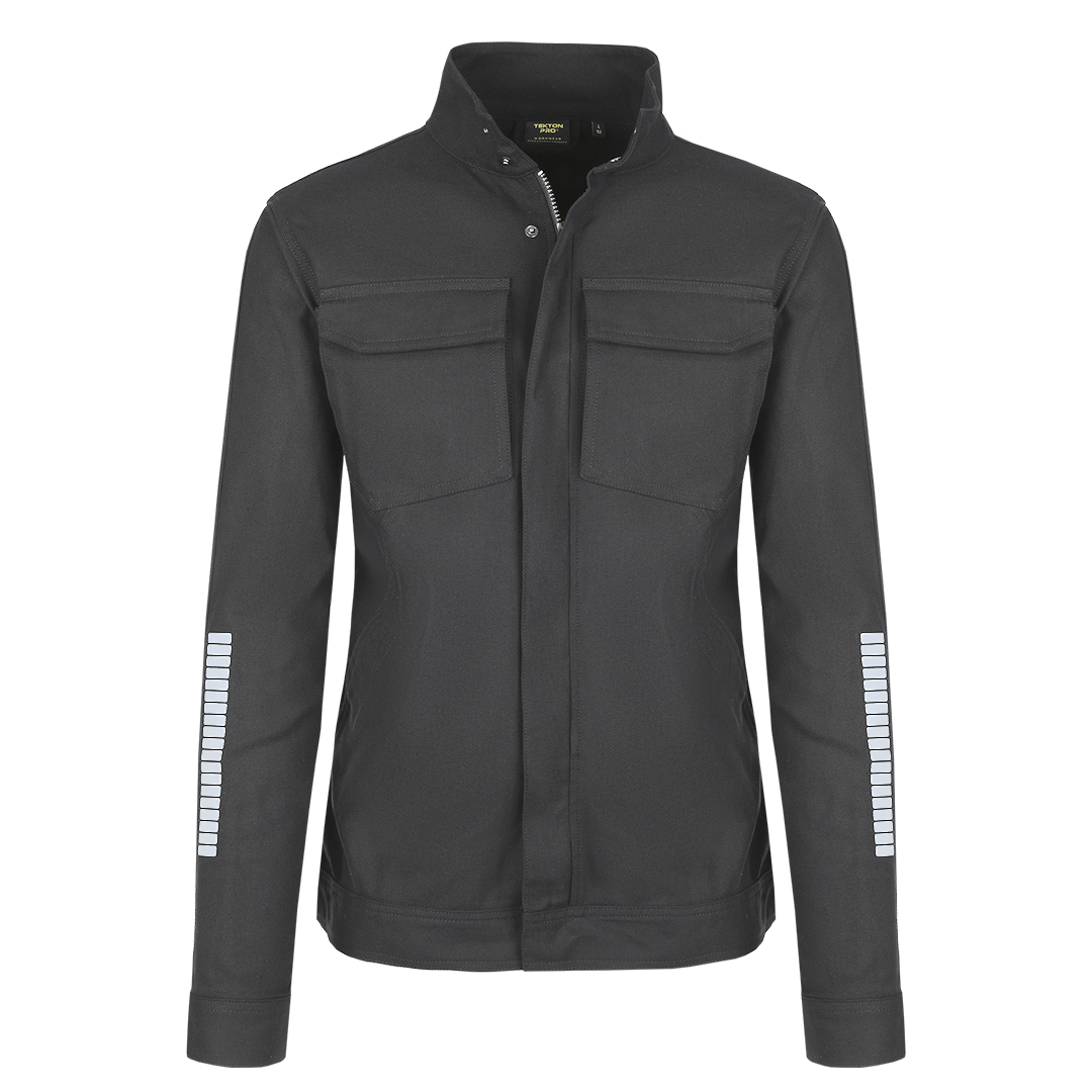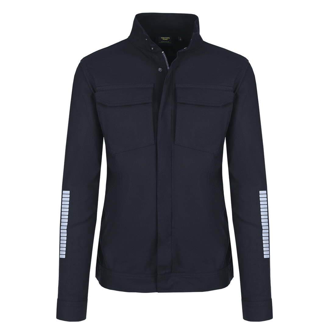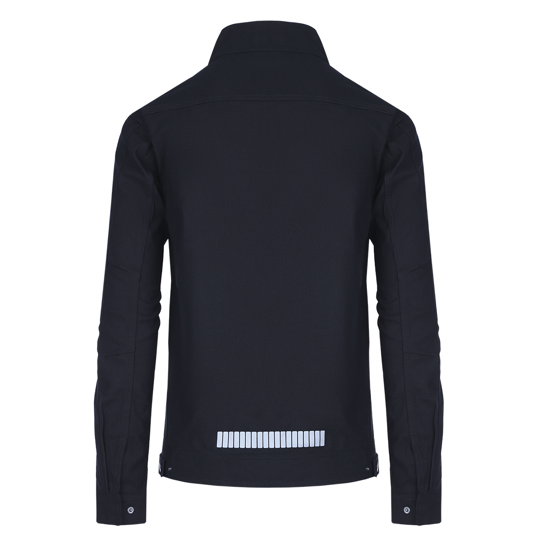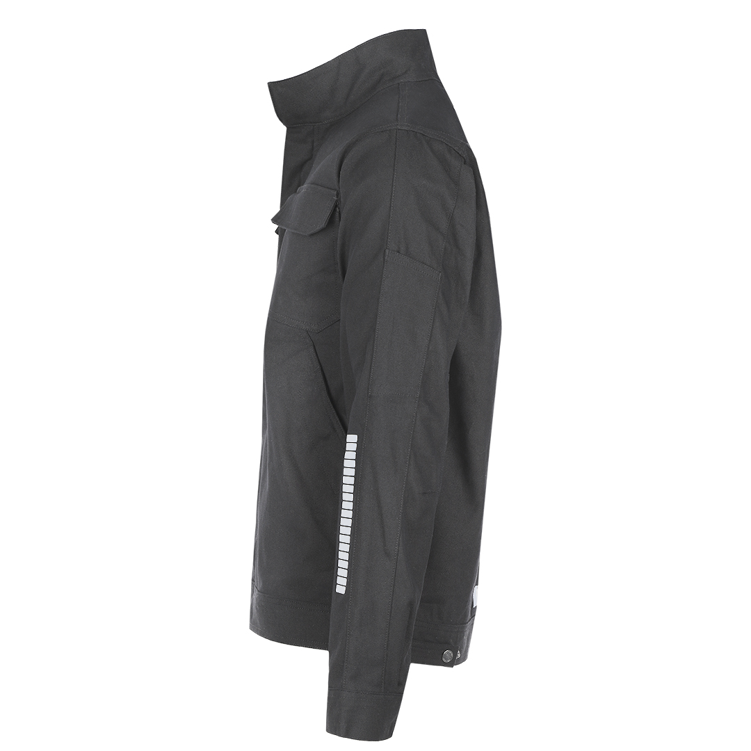 Radna bluza • Tkanina: keper • Gramatura: 295 g/m² • Sirovinski sastav: 68% pamuk, 30% poliester, 2% elastin • Visoka kragna • Preklop sa čičak trakama preko rajsferšlusa • Podesivi rukavi i donji deo • Dva džepa na grudima i dva prednja džepa • Reflektivna štampa • Unutrašnja etiketa za lične podatke • YKK rajsferšlusi • Pogodna za zahtevne radne uslov
