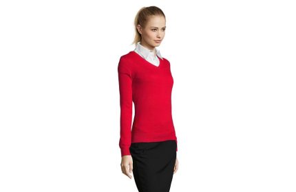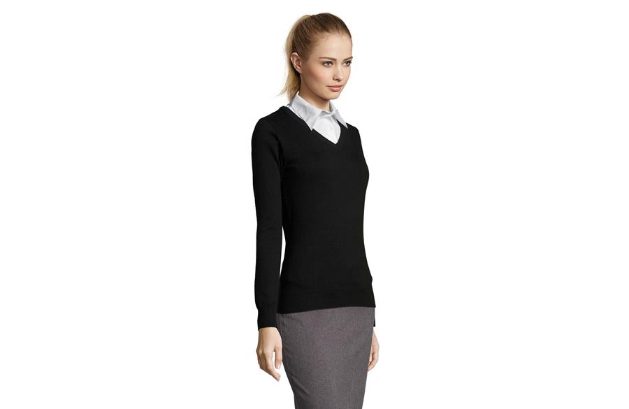 SOL’S GALAXY WOMEN je ženski džemper sa V izrezom koji spaja klasičnu eleganciju i moderan, ženstven kroj. Izrađen od JERSEY materijala od 240 g/m², u kombinaciji pamuka, akrila i poliamida, pruža toplinu, udobnost i postojan oblik. Strukiran kroj koji prati liniju tela naglašava ženstvenu siluetu, dok elastični završeci na okovratniku, manžetnama i dnu daju dodatnu udobnost i praktičnost. Savršen izbor za poslovne prilike, uniforme ili svakodnevno nošenje.