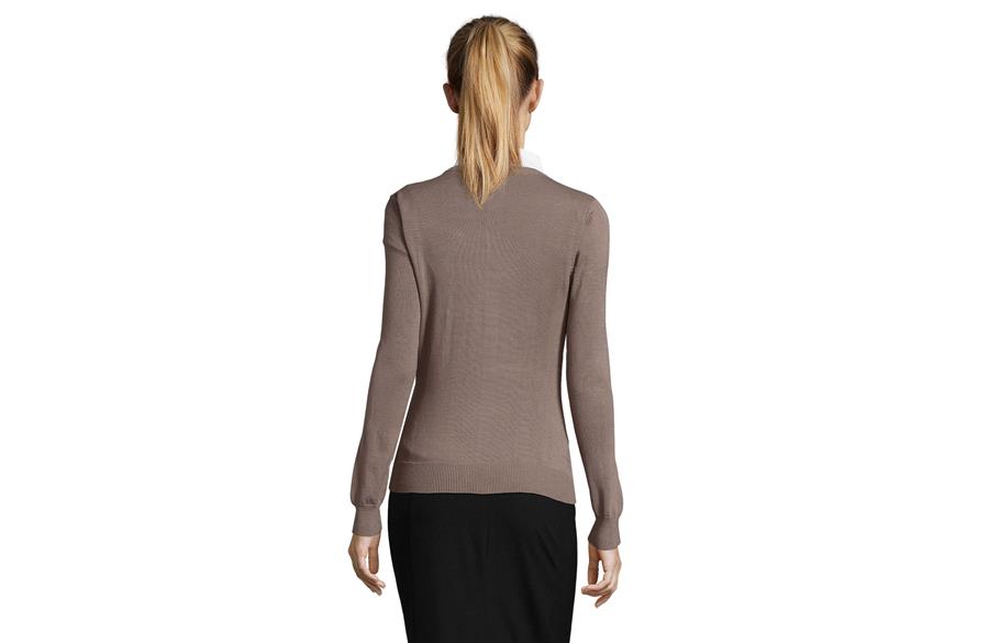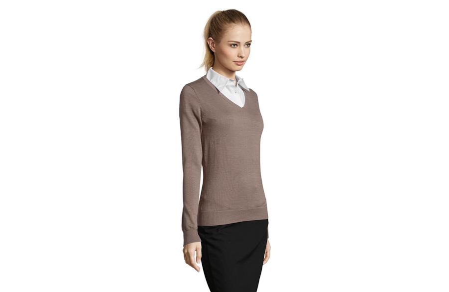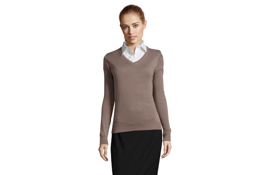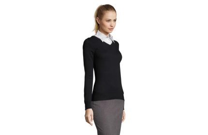 SOL’S GALAXY WOMEN je ženski džemper sa V izrezom koji spaja klasičnu eleganciju i moderan, ženstven kroj. Izrađen od JERSEY materijala od 240 g/m², u kombinaciji pamuka, akrila i poliamida, pruža toplinu, udobnost i postojan oblik. Strukiran kroj koji prati liniju tela naglašava ženstvenu siluetu, dok elastični završeci na okovratniku, manžetnama i dnu daju dodatnu udobnost i praktičnost. Savršen izbor za poslovne prilike, uniforme ili svakodnevno nošenje.