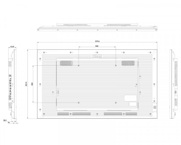 | Montiranje na zid: vesa 300mm x 300mm masa: 8.5kg boja: crna pakovanje: naponski kabl, daljinski upravljač, rs232 kabl, baterije | Montiranje na zid: |