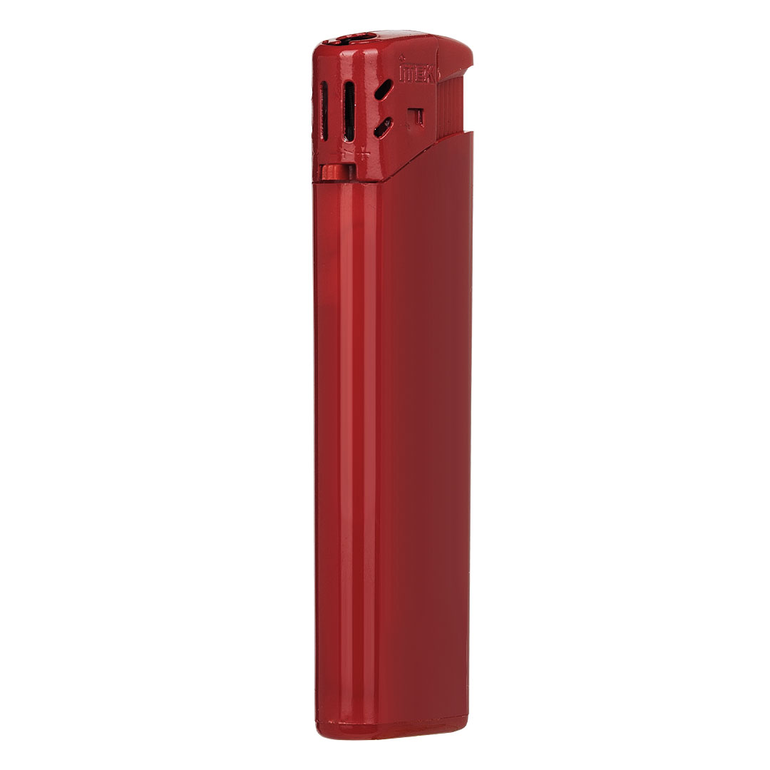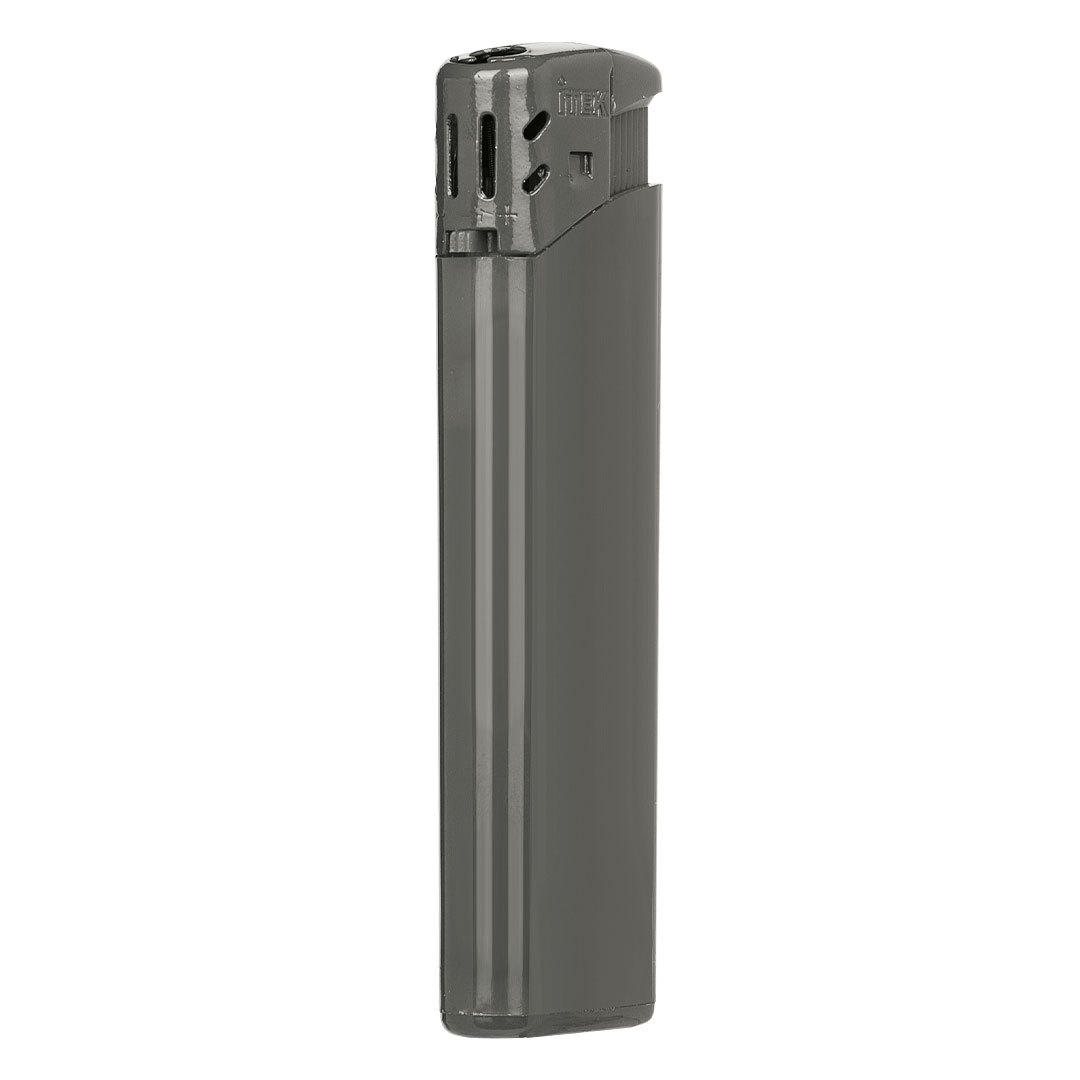 Elektronski upaljač • Materijal: ABS • Normalan plamen • Dopunjiv • Širok spektar boja • Sertifikovan: EN 13869 – bezbednosni standard (dečja sigurnosna zaštita) • Sertifikovan: ISO 9994 – bezbednosni standard za upaljače