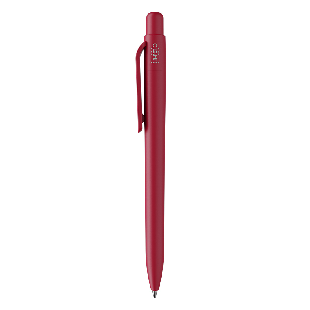 Hemijska olovka • Materijal: sertifikovani reciklirani R-PET (od plastičnih flaša) • Italijanski brend MAXEMA • Proizvedeno u Italiji • Vrh 1 mm • JUMBO refill – do 2.500 m pisanja • Plavo mastilo • Široka paleta boja • Mat završna obrada • Premium ekološki promotivni proizvod
