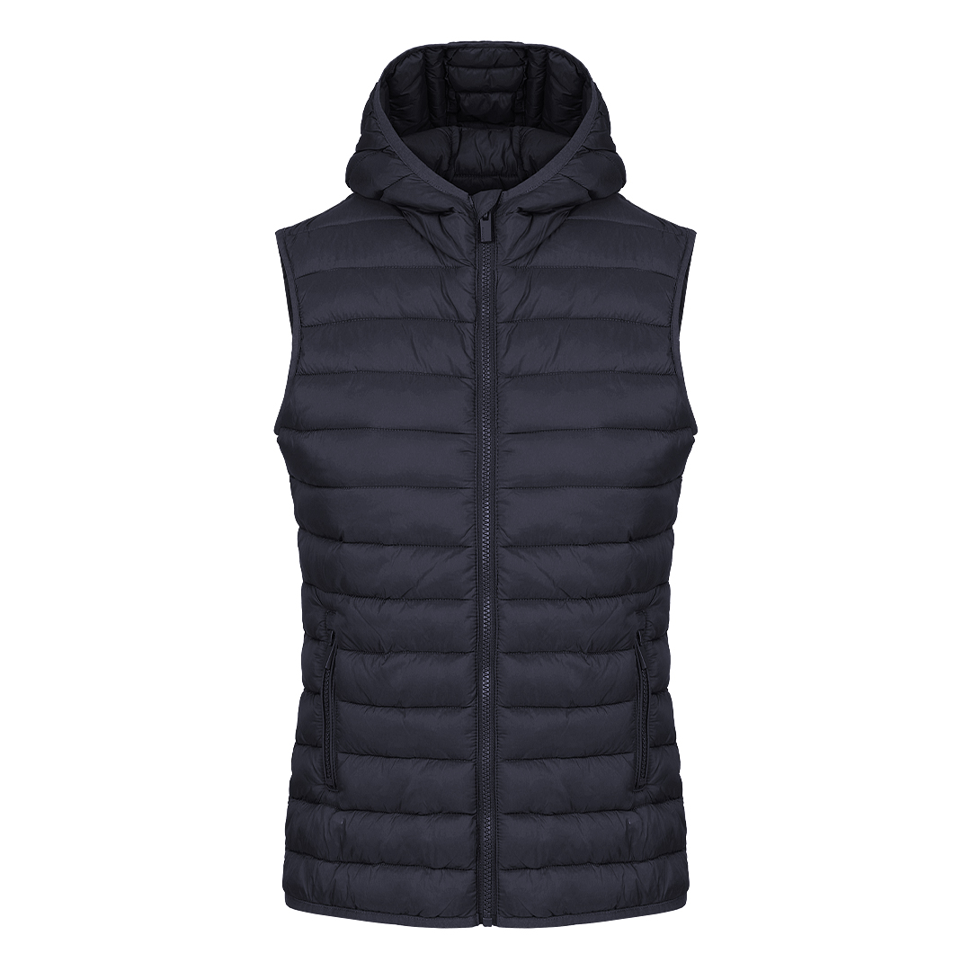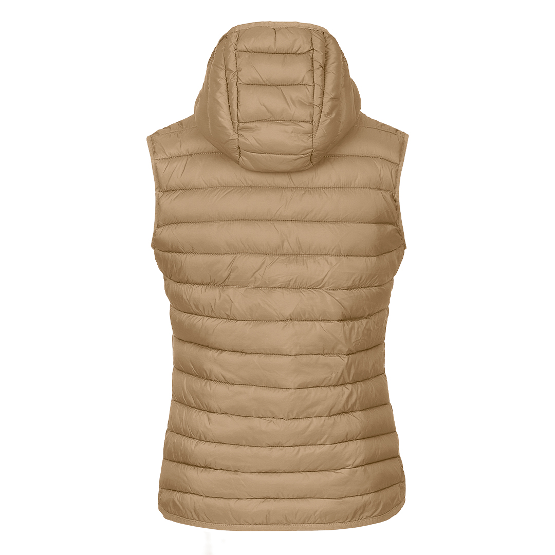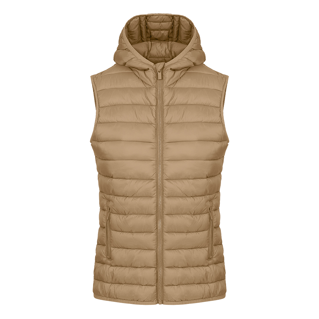 Prsluk sa kapuljačom u ženskom kroju • 100% najlon • Lagano punjenje • Štepana konstrukcija • SAB rajsferšlusi • Dva prednja džepa • Elastični paspuli • Vrećica za pakovanje (pogodna za štampu) • Pogodan za uniforme, promocije i outdoor aktivnosti