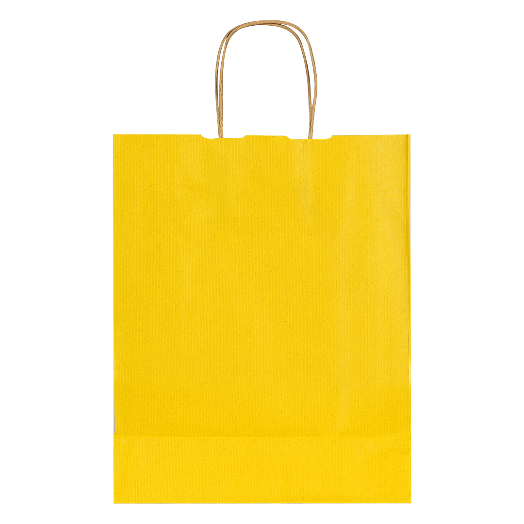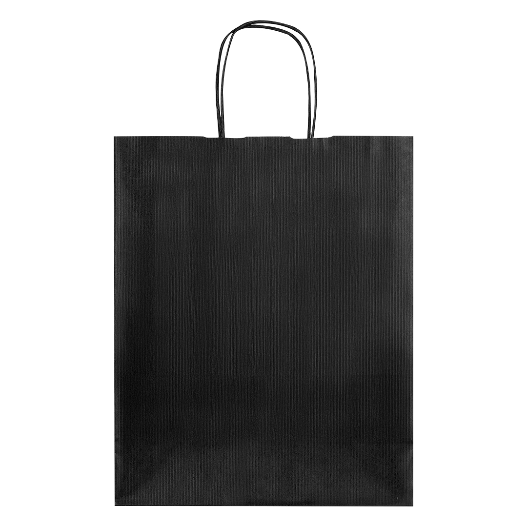 Papirna poklon kesa • Materijal: kraft papir 120 g/m2 • Diskretna prugasta tekstura • Ravno sečen gornji rub • Pletene papirne ručke u boji kese • Ojačano dno cik-cak preklopom • Najširi izbor boja • Pogodna za promocije, retail i poklon pakovanja • FSC sertifikat