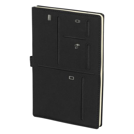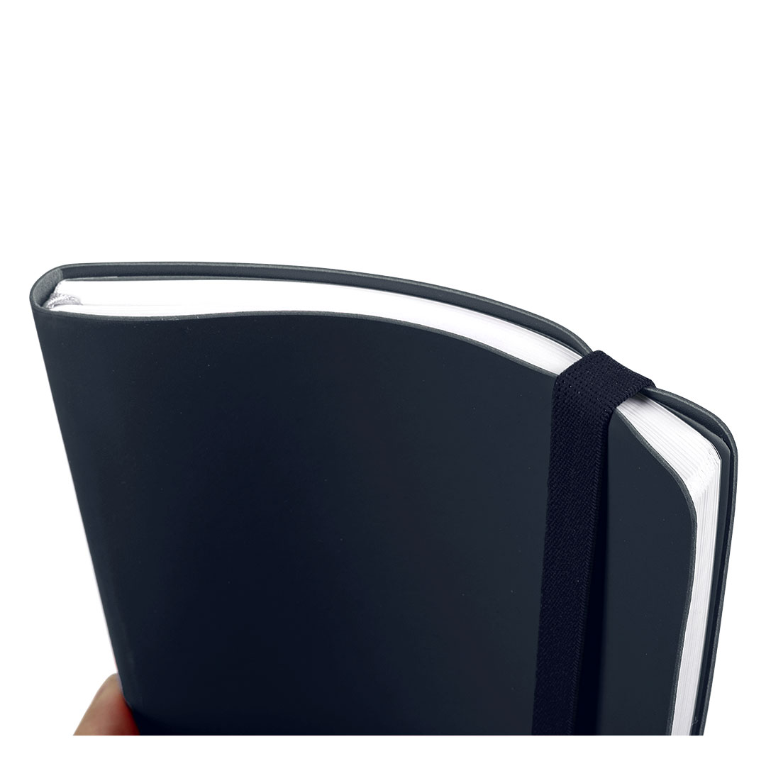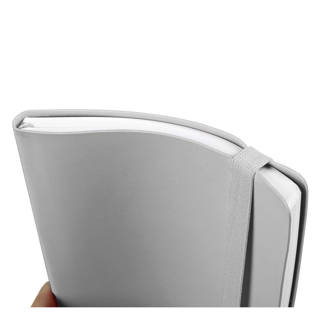 Notes formata A5 sa fleksibilnom gumiranom koricom i zaobljenim ivicama, prilagođen intenzivnoj svakodnevnoj upotrebi. Opremljen je elastičnom trakom i džepom na unutrašnjoj strani zadnje Korica, što omogućava praktičnu organizaciju dokumenata. Soft-touch završnica Korica obezbeđuje prijatan osećaj pri korišćenju. Knjižni blok u linije sa 192 strane belog papira gramature 80 g/m² pogodan je za poslovne beleške i promotivne namene. Proizveden u Evropi.