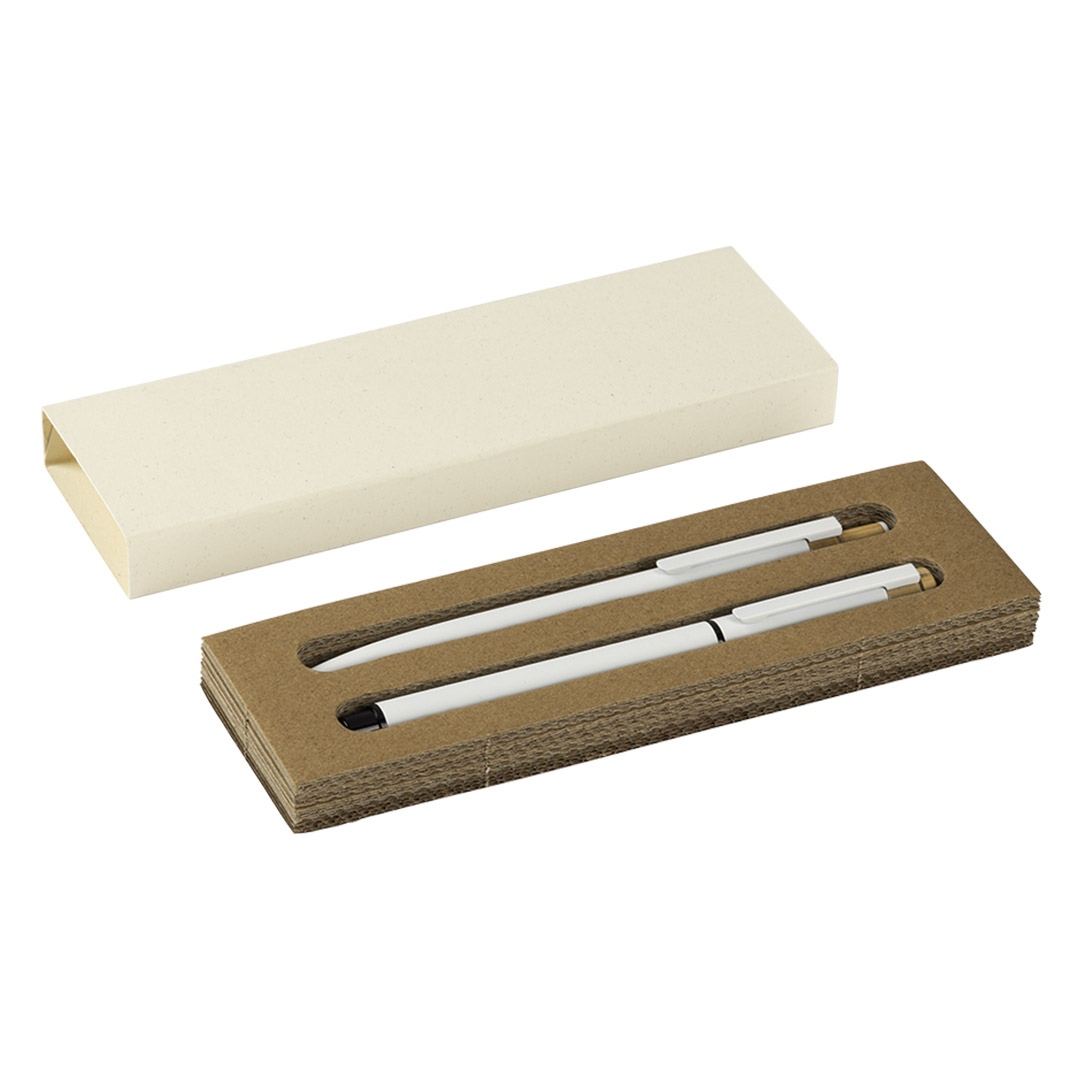 Set hemijske i roler olovke • Materijal: aluminijum • Soft touch telo • TC kuglica 0,7 mm (hemijska) • TC kuglica 0,5 mm (roler) • Plavo mastilo • Detalji u boji tela olovke • Ekološka poklon kutija • Idealno za poslovne poklone i promotivnu upotrebu