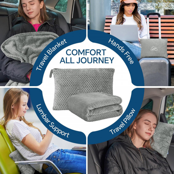 Mekano i udobno putno ćebe – Ovo ćebe je dizajnirano za korišćenje na putovanjima, kampovanju i vožnji autom. Udobno i toplo, ćebe omogućava putnicima da se ugreju tokom dugih letova i vožnji. Kada nije potrebno kao ćebe, može da se lako sklopi u jastuk i tako ostvaruje svoju drugu namenu. Putno ćebe 2u1 je idealno kao poklon za sve, bez obzira na pol ili uzrast. Posebno je pogodno za korišćenje u avionu, automobilu, autobusu, vozu, na aerodromima, kod kuće ili u kancelariji.