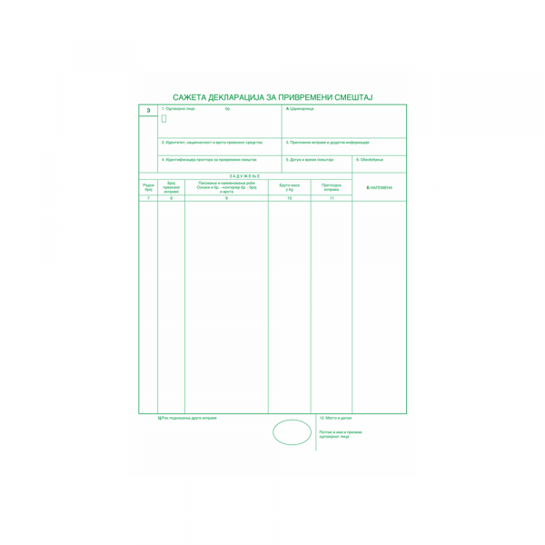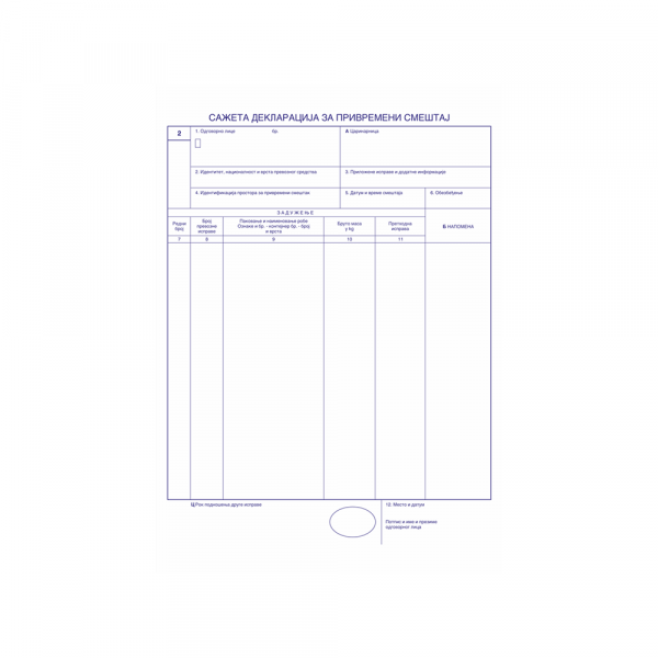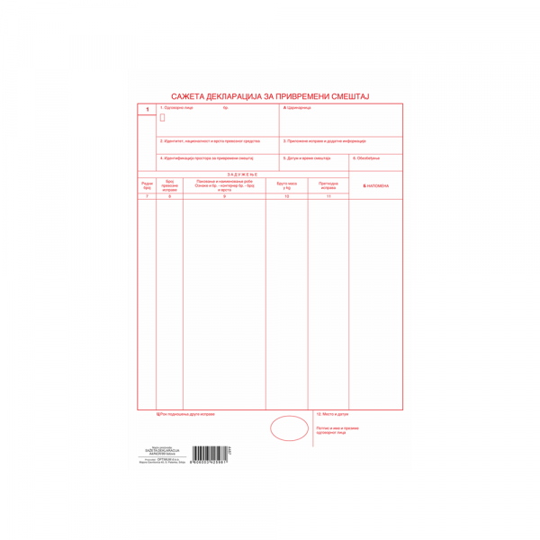 – Sažeta deklaracija za privremeni smeštaj