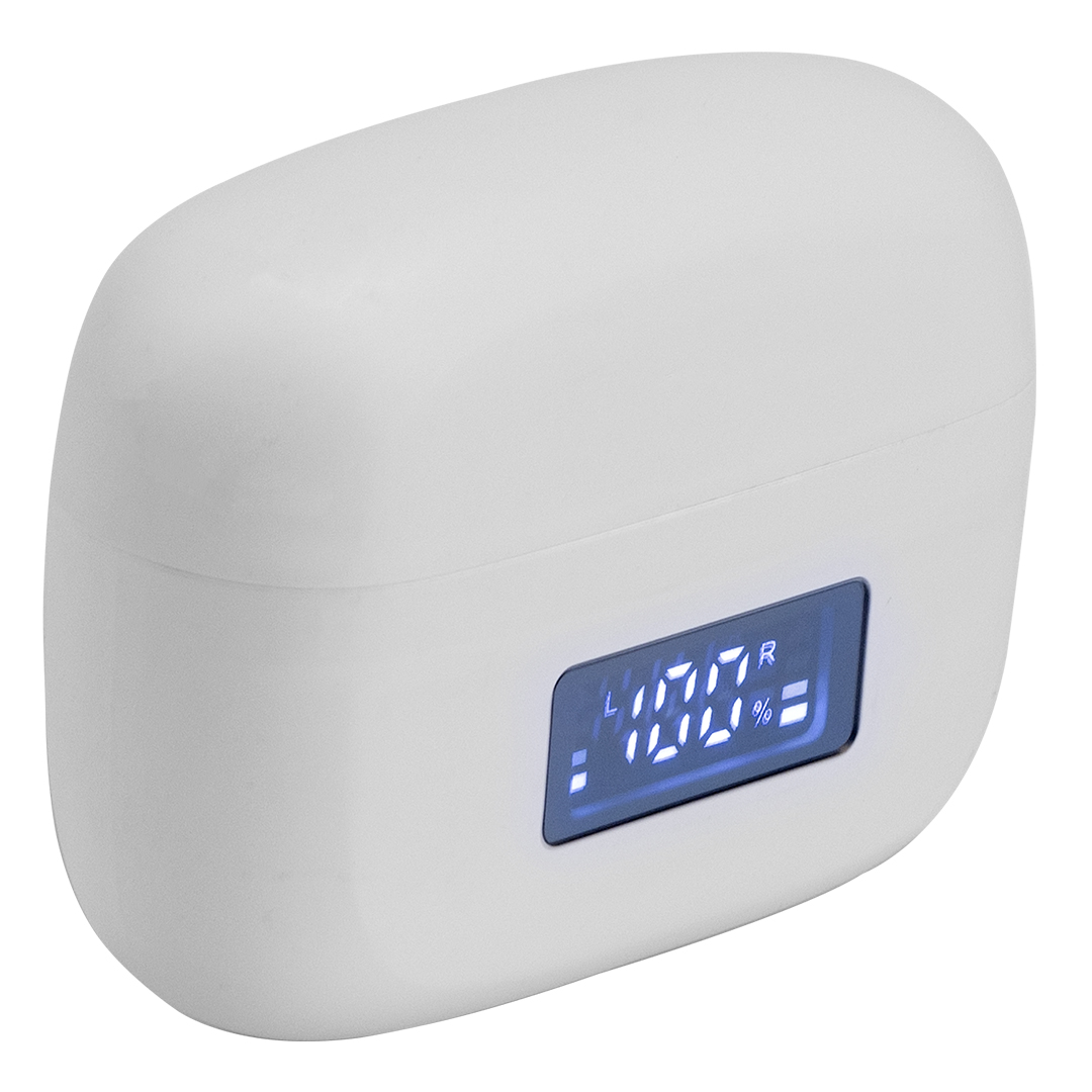 Bežične slušalice nude pouzdane performanse i moderan dizajn za svakodnevnu upotrebu. Zahvaljujući stabilnoj Bluetooth 5.3 vezi, omogućavaju jasan zvuk i nesmetanu komunikaciju, bilo da slušate muziku ili obavljate pozive. Kučište je opremljeno sa displejem koji prikazuje nivo baterije slušalica, pružajući dodatnu praktičnost i bolju kontrolu nad korišćenjem. Ove slušalice pružaju dobar balans između autonomije, funkcionalnosti i udobnosti, uz mogućnost brendiranja za promotivne i poslovne svrhe.