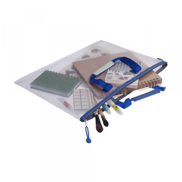 Višenamenske EVA Mesh torbe A4++ (405mmx280mm) formata idealne su za sveske, udžbenike, pribor za crtanje, umetnički materijal i druge veće predmete. Izrađene od ojačane mreže koja je vodootporna i reciklažna, sa praktičnom ručkom, metalnim rajsferšlusom i držačem za karticu, ove torbe omogućavaju dugotrajnu i udobnu upotrebu.