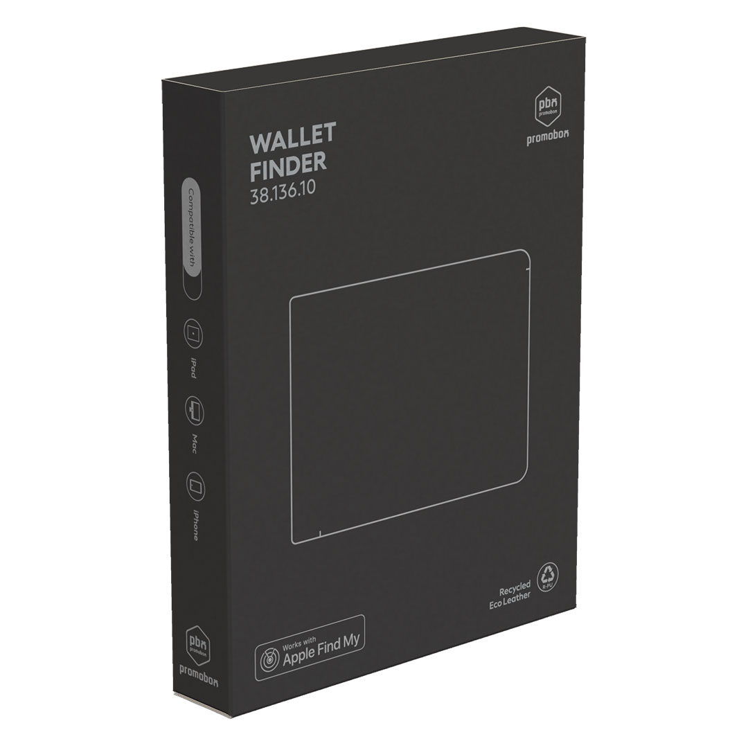 Novčanik sa funkcijom lociranja • Materijal: reciklirana eko koža • Prostor za odlaganje novca i kartica • Kompatibilno sa Apple uređajima • Licencirano od strane Apple-a • Bežično praćenje putem Apple aplikacije „Find My“ • Punjiva Li-ion baterija kapaciteta 100 mAh • Bežično punjenje, ulazna snaga 2 W • Zvučni signal za lociranje predmeta u blizini • Jačina zvučnog signala 90 dB • Trajanje baterije do 6 meseci • Poklon kutija
