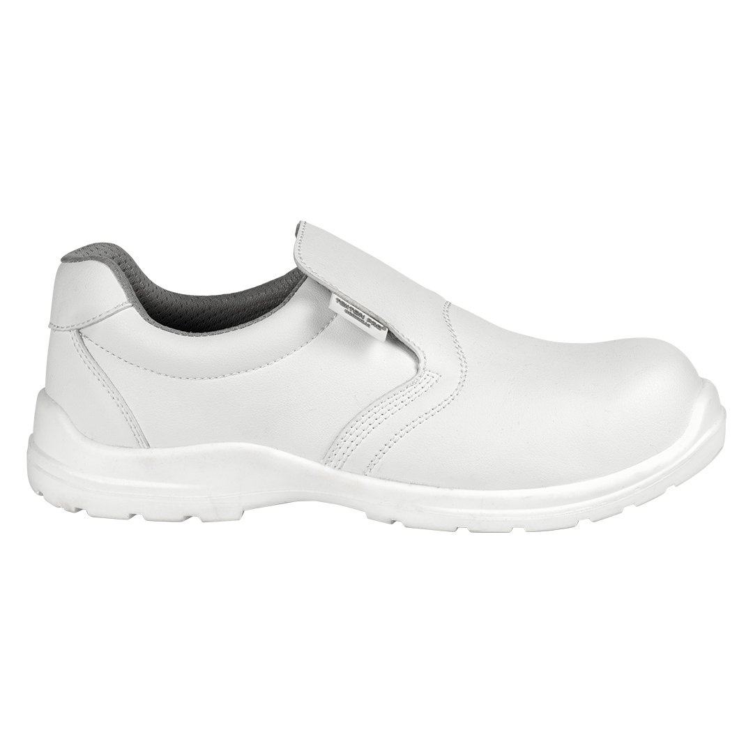 Zaštitna radna cipela WEISS je plitki model tipa espadrile, namenjen radnim okruženjima gde su higijena, lako održavanje i sigurnost na klizavim podlogama ključni zahtevi. Zahvaljujući potpuno nemetalnoj konstrukciji, cipela je pogodna i za objekte sa detektorima metala i posebnim bezbednosnim procedurama. Model spada u PPE II kategoriju, sertifikovan je prema EN ISO 20345 standardu i ima S2 SRC nivo zaštite.